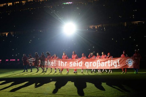 Jogadór sira hosi Bayern hato’o mensajen agradesimentu ba adeptu sira iha jogu remata ("Obrigadu, imi maka fantástiku liu!").