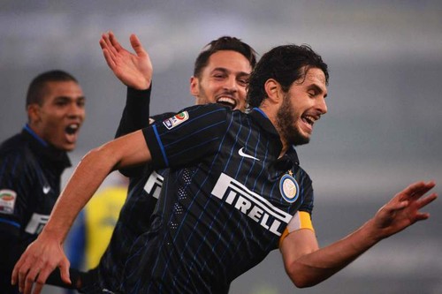 Emblema Milão, ne’ebé hala’o jogu lima tuituir malu la manán, horisehik konsege manán ho golu hosi Mateo Kovacic (iha minutu 19') no Andrea Ranocchia ( iha minutu 55').