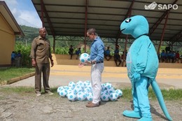 Devido ao elevado o número de alunos das escolas existe falta de material desportivo para os treinos. Para minimizar esta situação a Timor Telecom disponibizou-se para oferecer à escola de Manleuana 100 bolas de futebol e 100 sacos mochila para os alunos.