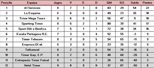 Confira abaixo a classificação actualizada depois da realização destes dois encontros.