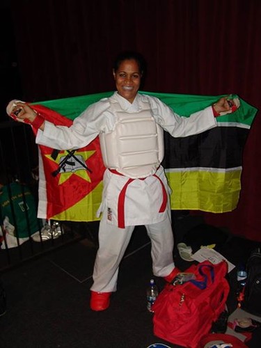 Feto ne’e nia aman timoroan no inan mosambikanu maka sai pratikante no instrutora karaté, Mukilina dehan nia kontente tebes ho vitória ida ne’e.