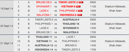 Rezultadu fim de semana (19, 20 no 21 setembru) AFF Futsal Championship
