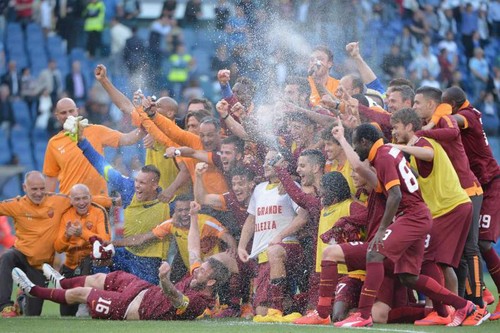 AS Roma horisehik hametin ninia pozisaun ba segundu lugár hosi Liga italiana futeból, hodi garante tama ba faze grupu Liga Kampeaun, hodi manán dérbi hasoru Lazio 2-1.